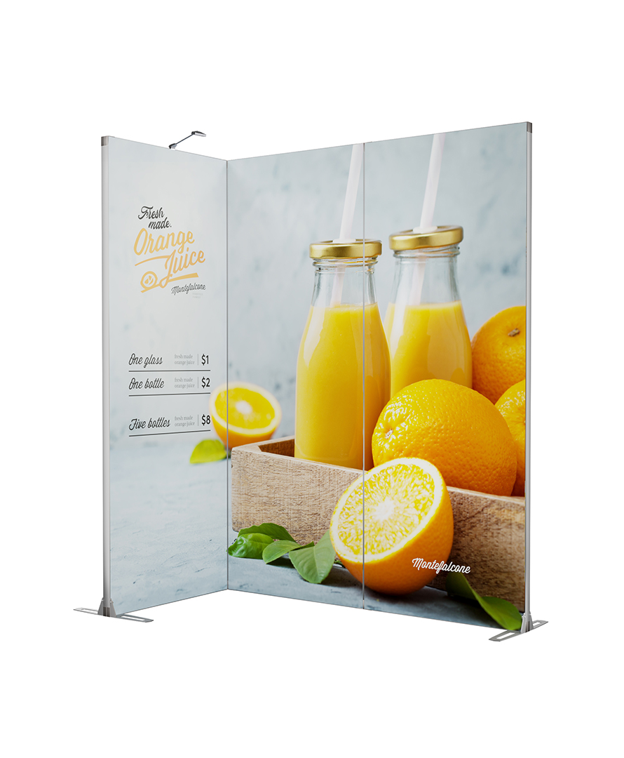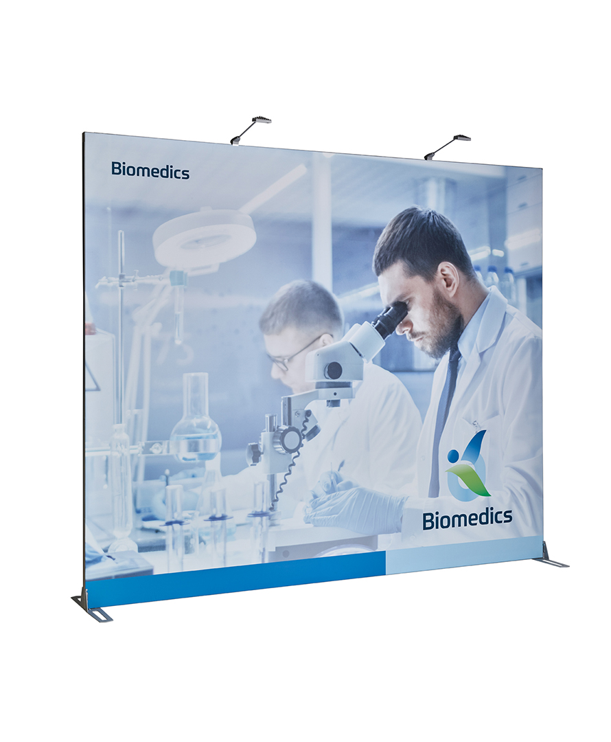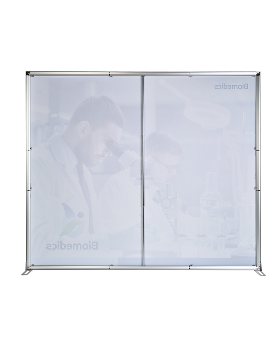 Trycket är stretchig textil som spänns snyggt i ramen med silikonlist, vilket ger en riktigt modern och slät look utan synliga kanter. Och när du vill uppdatera budskapet är det bara att beställa ny textil och byta – snabbt och smidigt.