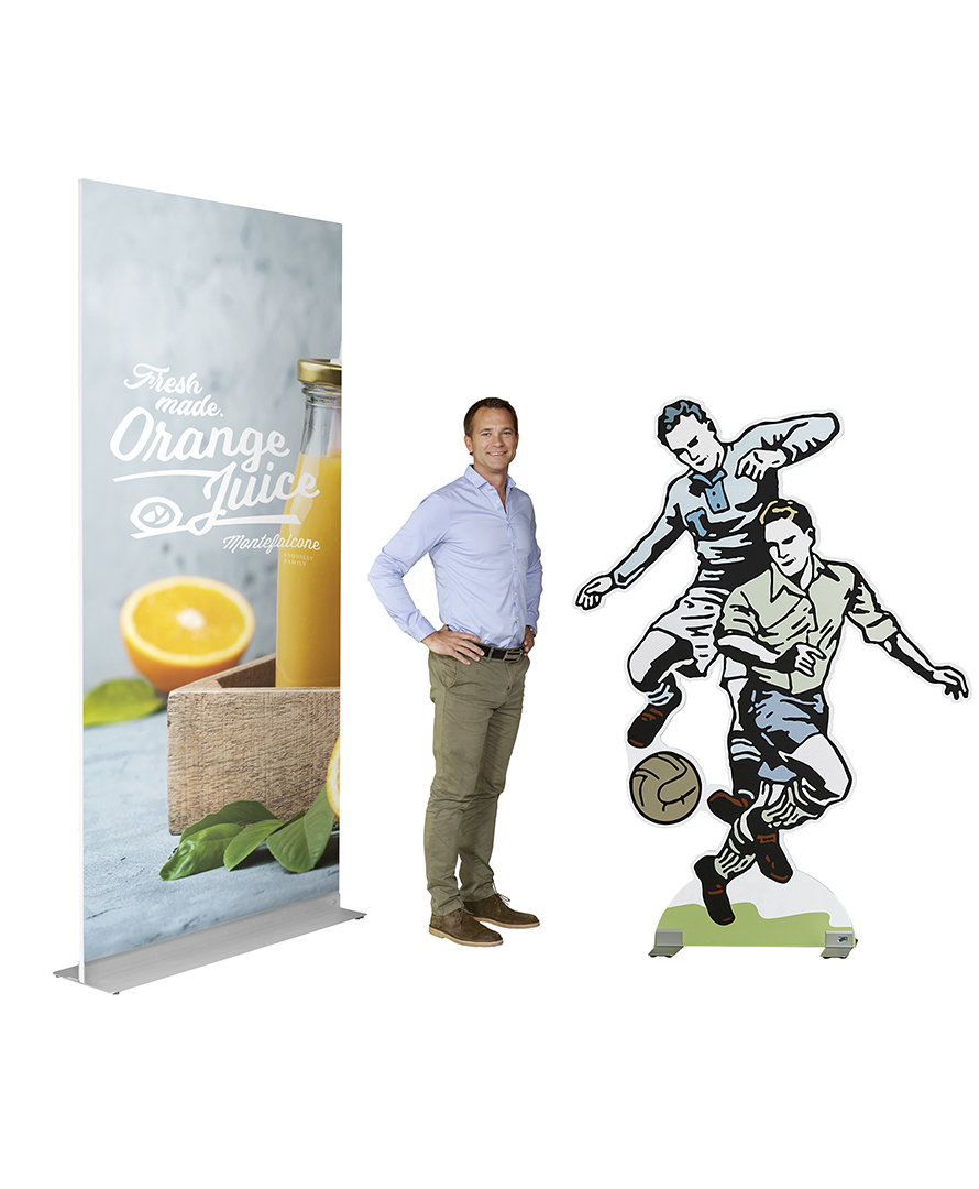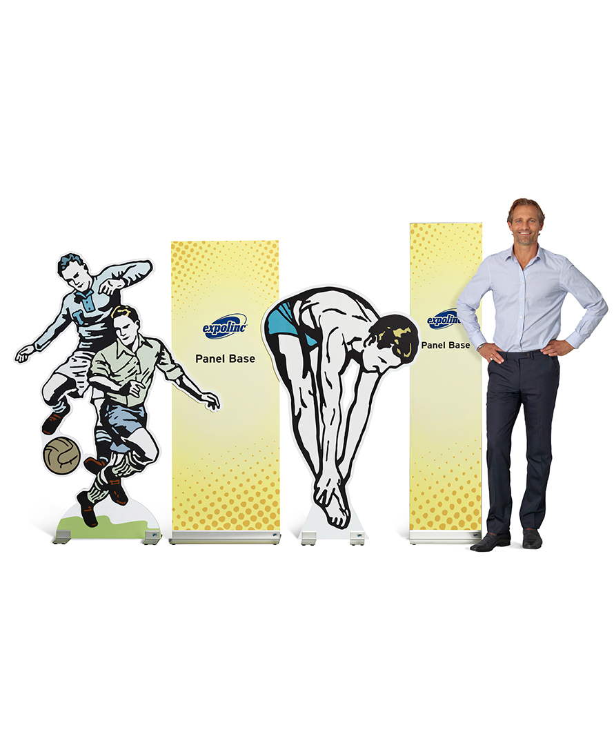 Panel Base är en golvstående, dubbelsidig skylthållare som håller alla hårda skivmaterial upp till 19 eller 26 mm tjocklek i ett stadigt grepp. Perfekt för dig som vill skapa utskurna figurer och skyltar med eget tryck! Skylten står rakt och stabilt efter snabb och lätt montering. Installationen är enkel därför att du varken behöver håltagning eller verktyg!