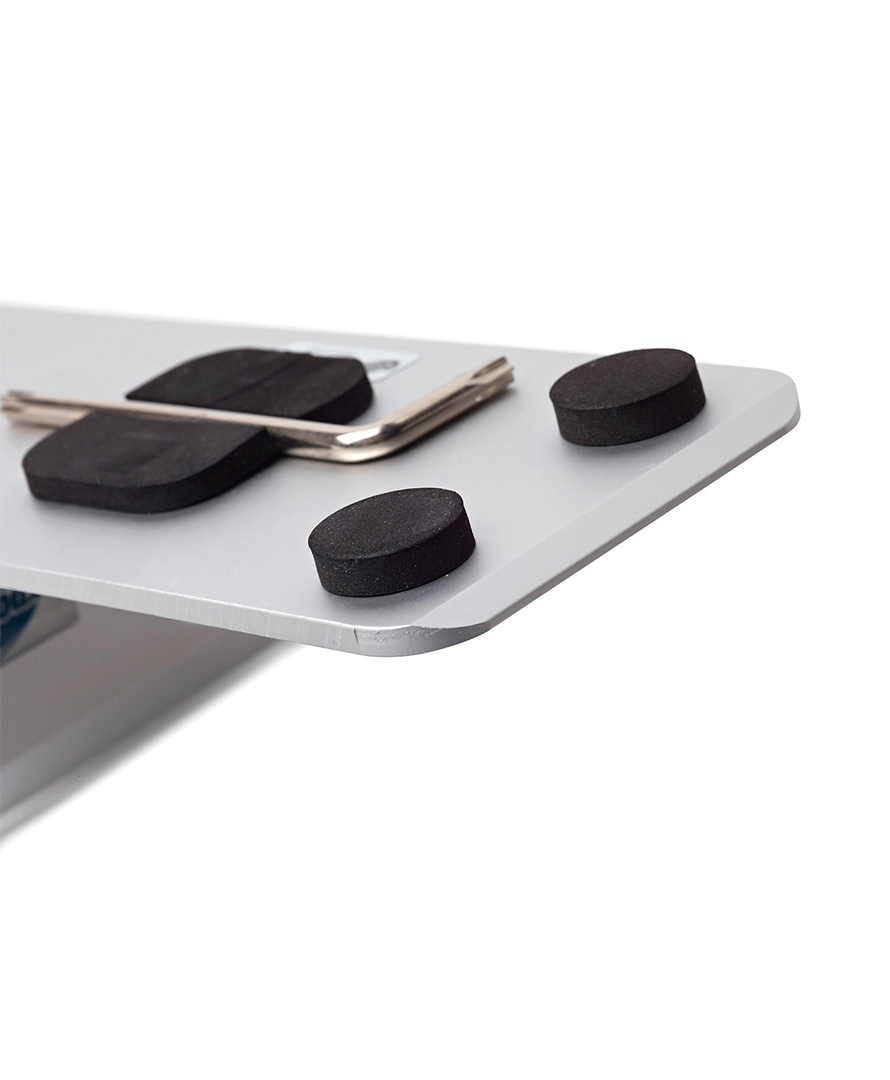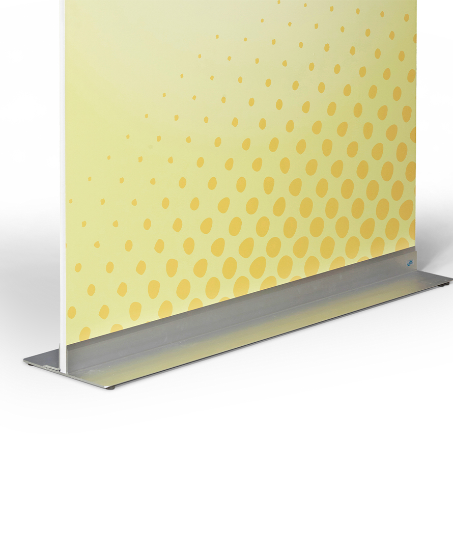 Eftersom foten griper den monterade skivan så hårt, kan du lyfta hela systemet i panelen. Under skylthållaren finns gummifötter som skyddar golvet och ger ett svävande intryck. Skyltfoten är framtagen för inomhusbruk i alla olika slags miljöer och sammanhang för mässa, event, utställning, konferens, reception m.m.